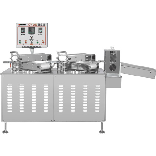 The machine is a kind of candy bar rubbing machine. The candy bars after rubbing can be used for producing various kinds of spiral fancy candies. The candy bars produced by the machine have uniform thickness, clear grains, symmetrical stripes and the candy bar length can be freely adjusted(without stopping the machine), so as to meet the needs of candy manufactures for various styles.